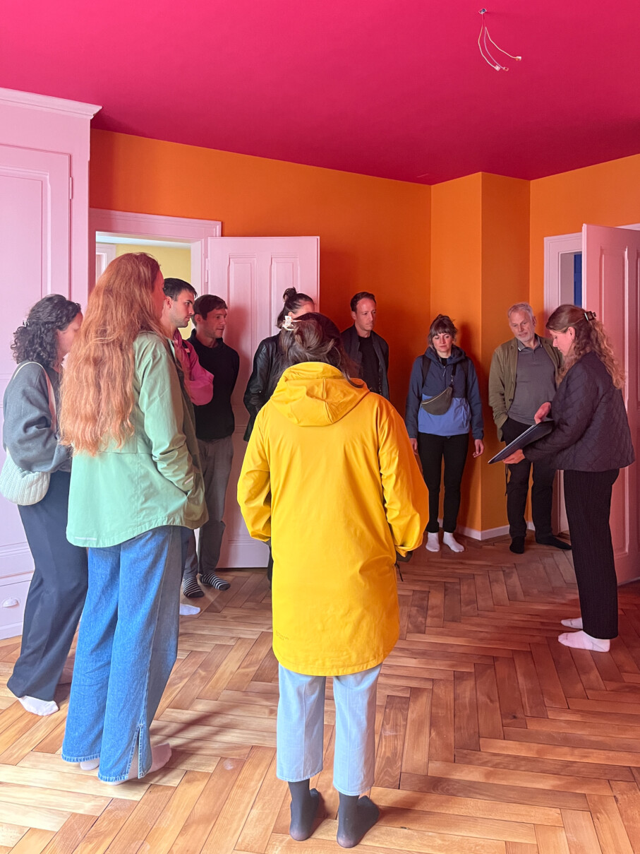 Vor der Übergabe gab es eine Besichtigung des farbenfrohen Umbaus am Zeigerweg – gemeinsam mit den Atelier abc’lerinnen.