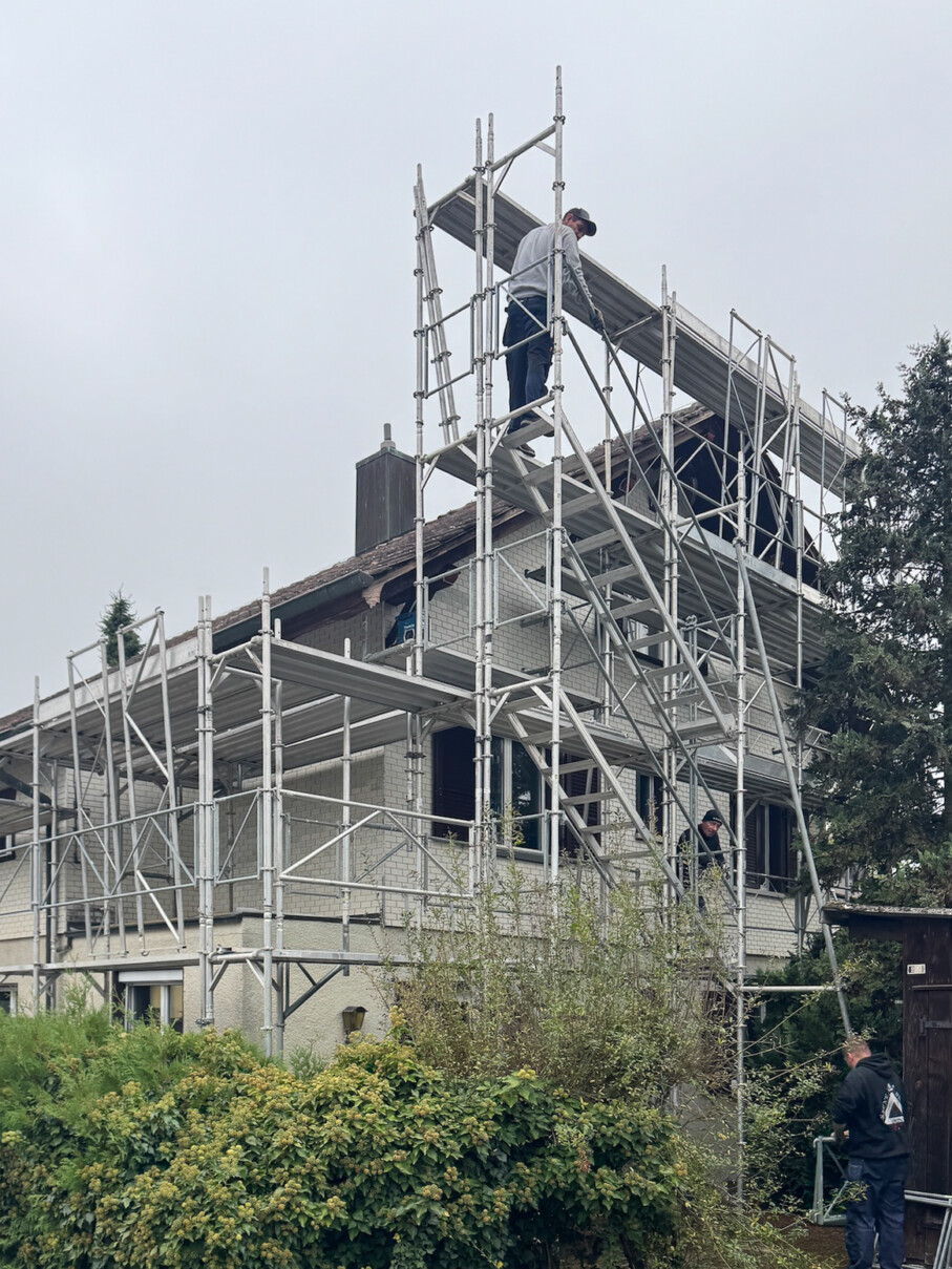 Ein sichtbarer Startschuss für die bevorstehenden Sanierungsarbeiten am Zweifamilienhaus.